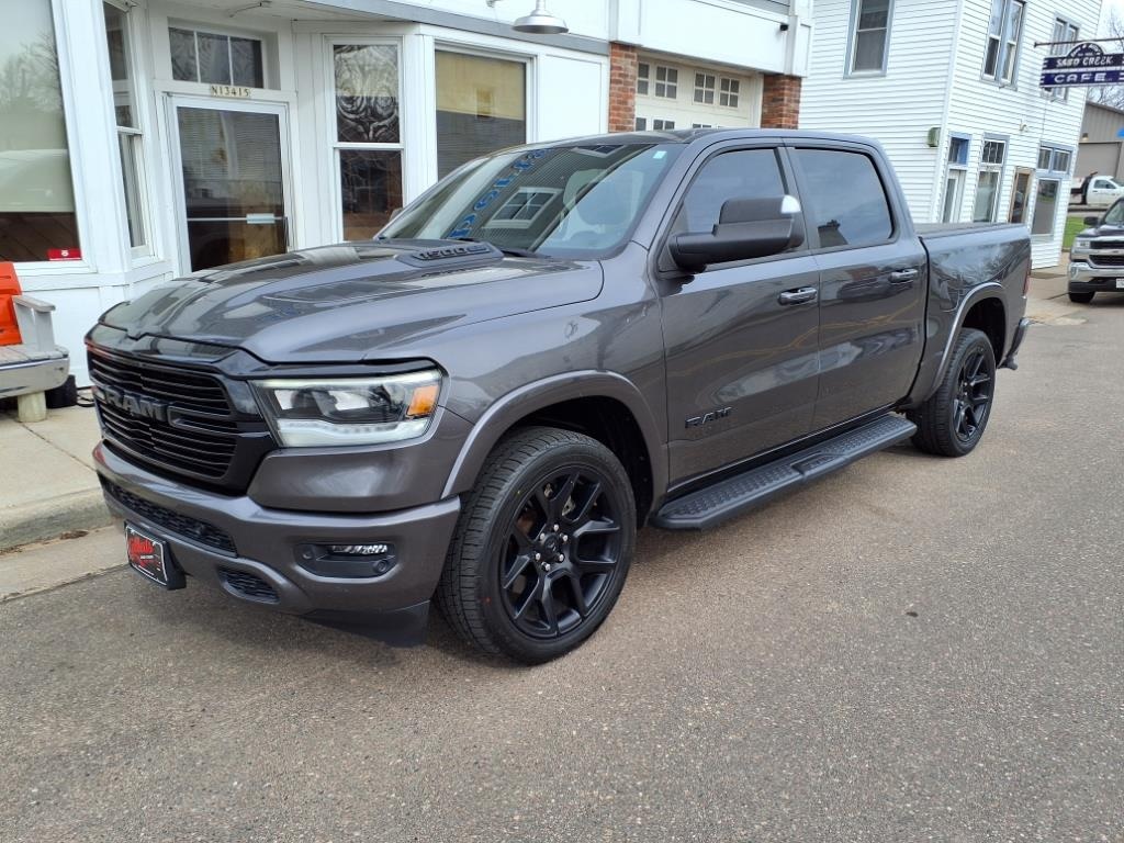 2021 Ram 1500 Laramie Crew Cab V8 Night edition, Pano Roof Adaptive Crui Granite Crystal Metallic Clearcoat Clean CARFAX. **CARFAX NO ACCIDENTS**, *ONE OWNER, *LEATHER, *HEATED STEERING WHEEL, *HEATED SEATS, *HEATED SECOND ROW SEATS*, *REMOTE START, *BACK UP CAMERA, *DUAL PANE PANORAMIC SUNROOF*, *UCONNECT 8.4 TOUCHSCREEN, *TOUCHSCREEN*, *PREMIUM HEADLIGHT PACKAGE*, *PROXIMITY KEYLESS ENTRY, *BLIND SPOT AND CROSS PATH DETECTION, *RAINSENSING WINDSHEILD WIPERS*, *AUTODIMMING HIGHBEAMS*, *PREMIUM AUDIO SYSTEM*, *ADAPTIVE CRUISE CONTROL, *LANE DEPARTURE WARNING, *READY ALERT BRAKING, *WIRELESS APPLE CARPLAY/ANDROID AUTO*, *PARK ASSIST, *TRAILER TOW PACKAGE, *BED LINER, *LED BEDLIGHTING*, *AND MUCH MORE*. Priced below KBB Fair Purchase Price!